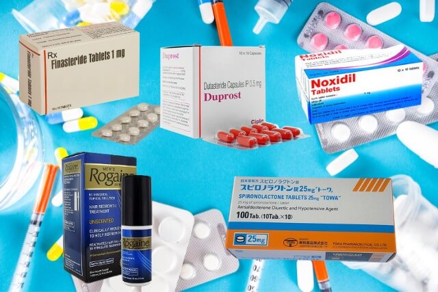 ・ミノキシジル頭皮塗布(5%~高濃度まで)・フィナステリド・デュタステリド
